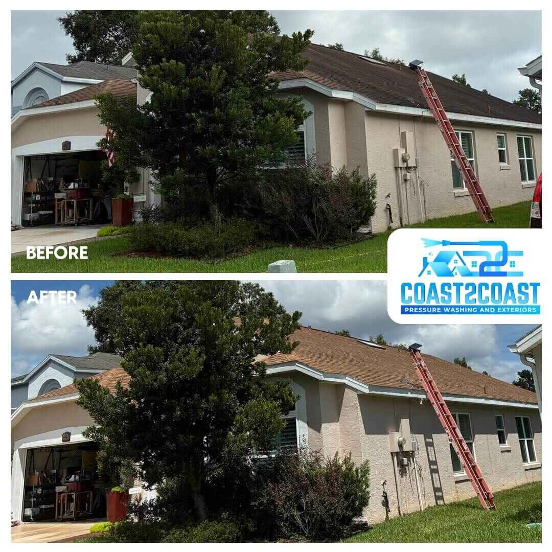 Roof damage is more than an eyesore—it can be costly and harmful to your home’s value. That said, if you’re looking for licensed roof cleaning professionals near you in Orange County, choose Coast 2 Coast Pressure FL without hesitation. This is imperative as those black streaks, algae, and mold patches aren’t just stains; they’re living organisms slowly feeding on your shingles. They can weaken your roof, shorten its lifespan, and put your property at risk. We excel at soft wash roof cleaning treatment that targets both organic and chemical stains effectively.